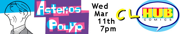 Discuss an intriguing book in a relaxed atmosphere at the next meeting of the HUB COMICS BOOK CLHUB! We’ll talk both form and content regarding our pick-of-the-month, Asterios Polyp by David Mazzucchelli, which is 10% off now ‘til BOOK CLHUB!